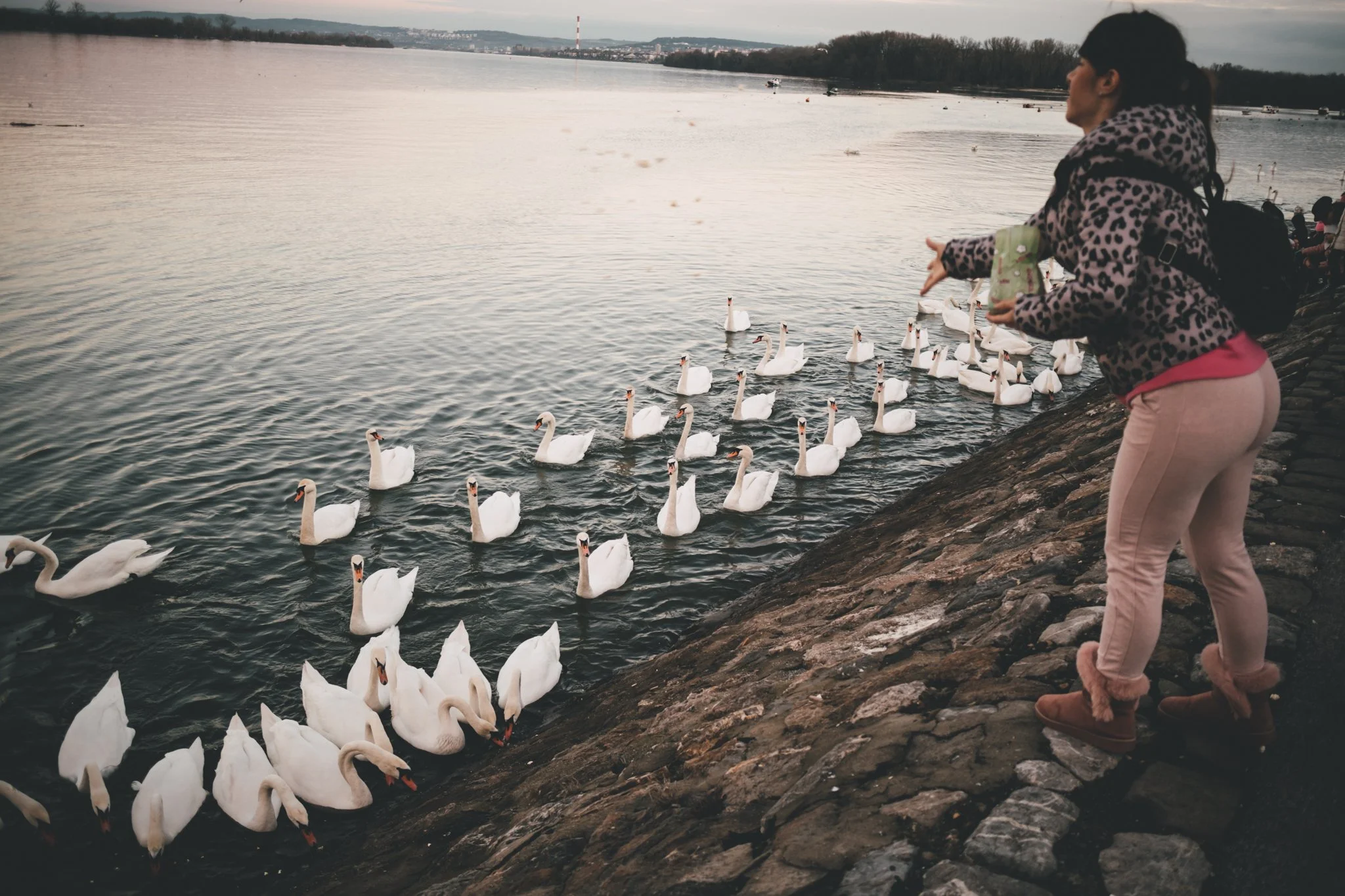Swans on the Danube river